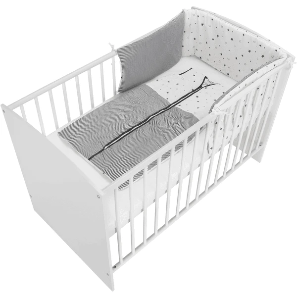 Schardt Komplettbett Classic White Sternchen grau inklusive Schlafsack 60 cm x 120 cm