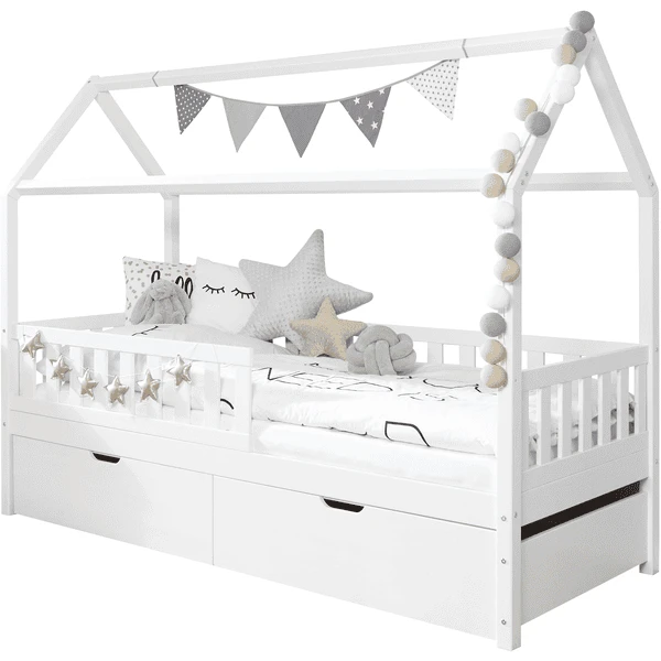 TiCAA Hausbett Traumhaus mit 2 Schubladen